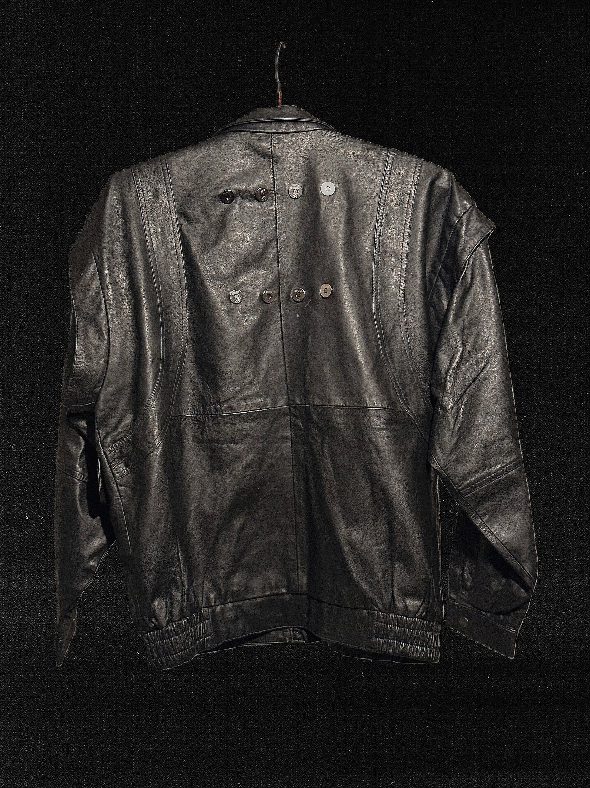 Vintage kožená bunda Leather Fashion by ELP z 90. let. Ikonický střih se širokými rameny, pevnou černou kůží a moto detailem na hrudi. Pravá kůže s krásnou patinou, kterou dnes už fast fashion nedokáže nahradit. Kousek z doby, kdy se kožené bundy dělaly poctivě a vydržely roky. Perfektní pro streetwear, focení nebo daily vintage look.